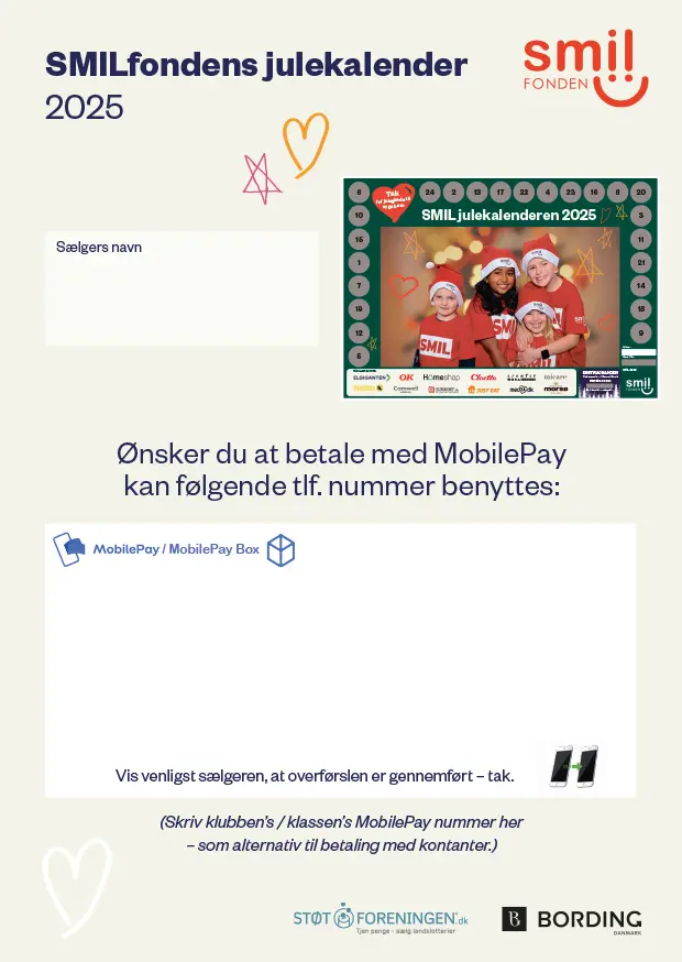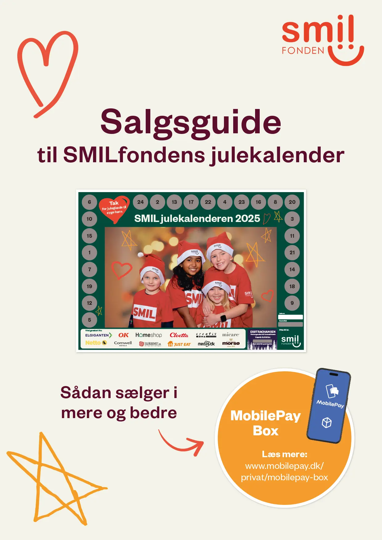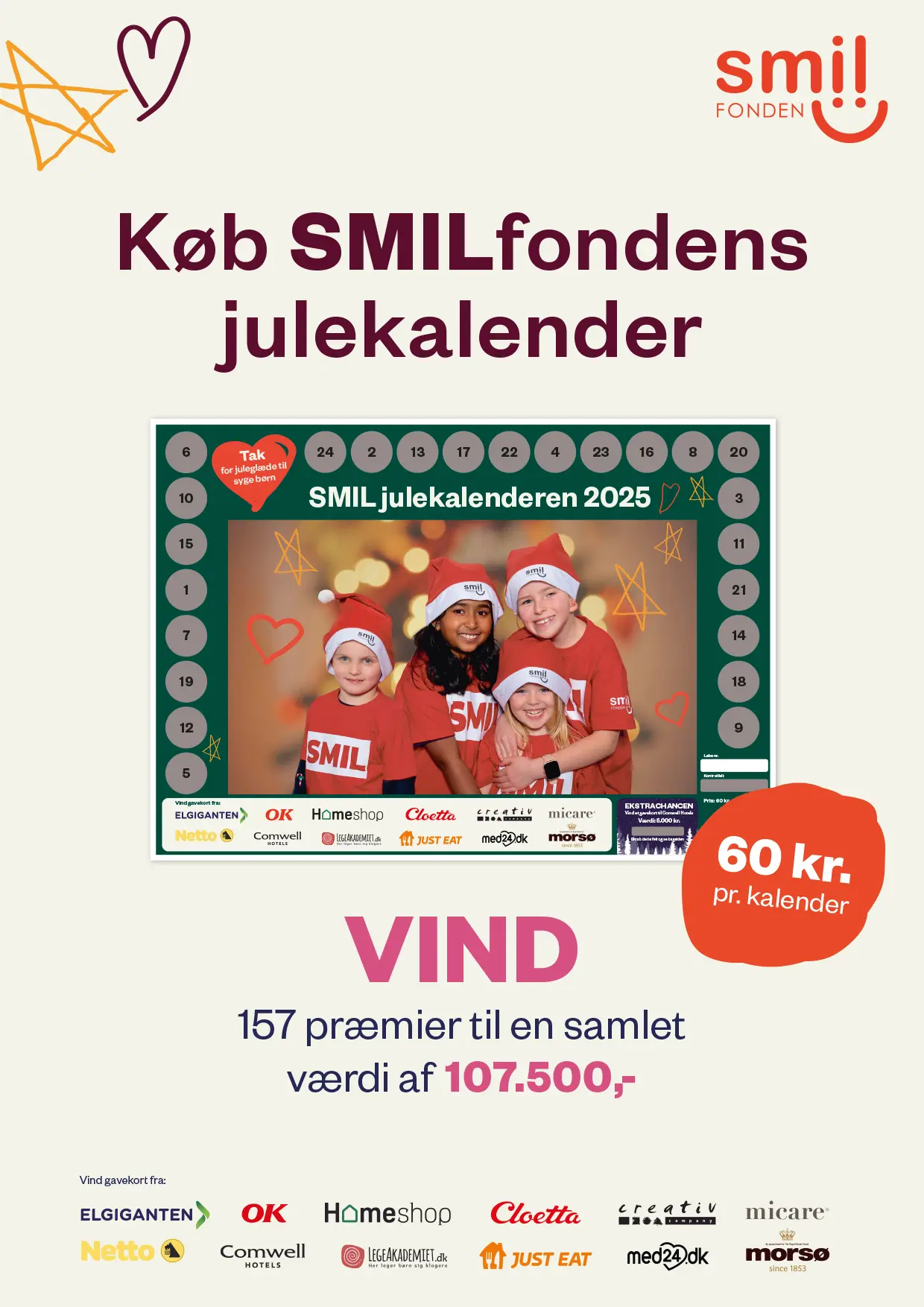 Når I køber SMILfondens julekalender, får I selv en hyggelig juleaktivitet, og støtter samtidig vores aktiviteter for børn, der er indlagt i julen.